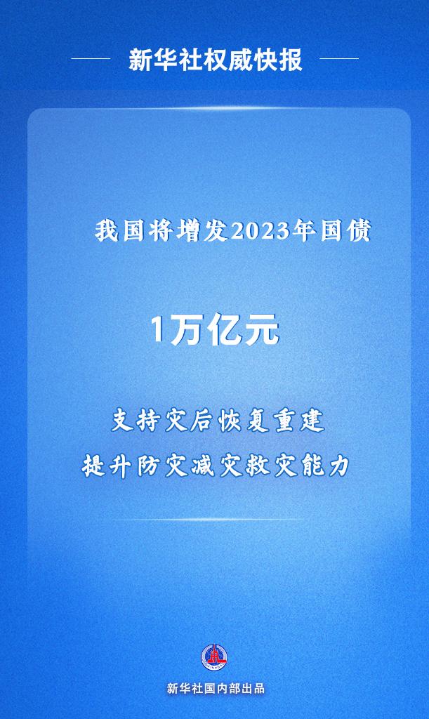新華社北京10月24日電 中央財(cái)政將在今年四季度增發(fā)2023年國(guó)債10000億元,增發(fā)的國(guó)債全部通過轉(zhuǎn)移支付方式安排給地方,集中力量支持災(zāi)后恢復(fù)重建和彌補(bǔ)防災(zāi)減災(zāi)救災(zāi)短板,整體提升我國(guó)抵御自然災(zāi)害的能力。 24日,十四屆全國(guó)人大常委會(huì)第六次會(huì)議表決通過了全國(guó)人民代表大會(huì)常務(wù)委員會(huì)關(guān)于批準(zhǔn)國(guó)務(wù)院增發(fā)國(guó)債和2023年中央預(yù)算調(diào)整方案的決議,明確了上述安排。