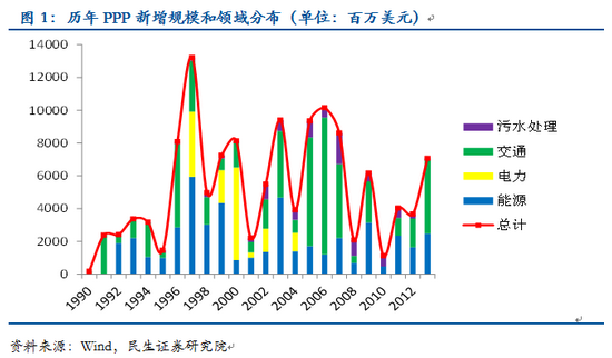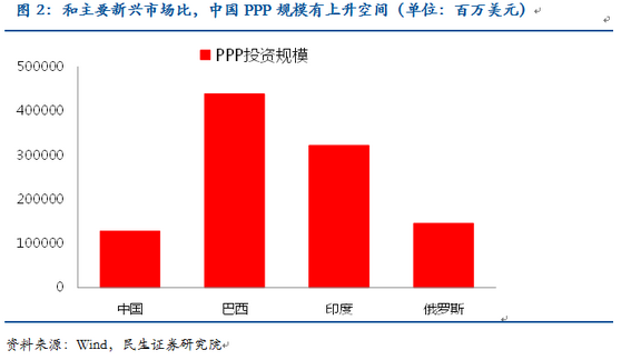 根據(jù)國務(wù)院研究發(fā)展中心的測算,到2020年,與城鎮(zhèn)化相關(guān)的融資需求約為42萬億元。根據(jù)43號文和《地方政府存量債務(wù)納入預(yù)算管理清理甄別辦法》的規(guī)定推演,未來地方政府性債務(wù)主要由一般政府債、專項政府債和PPP債構(gòu)成。可見,應(yīng)對未來幾十年城鎮(zhèn)化的資金缺口,PPP模式被委以了重任。 從43號文規(guī)定來看,對于新增政府債務(wù),推廣使用政府與社會資本合作模式。鼓勵社會資本通過特許經(jīng)營等方式,參與城市基礎(chǔ)設(shè)施等有一定收益的公益性事業(yè)投資和運營。對于存量政府債務(wù),在建工程確實沒有其他建設(shè)資金來源的,應(yīng)主要通過政府與社會資本合作模式和地方政府債券解決后續(xù)融資。 PPP模式具有較大的發(fā)展?jié)摿?。一方面?013年中國PPP項目的累計總投資為1278億美元,和同類型新興市場比有較大的差距。另一方面,2013年新增的PPP投資額僅為7億美元,而2013年城投債的發(fā)行量則高達9512億元,若PPP模式成功替代城投主導(dǎo)的融資模式,其發(fā)展空間巨大。