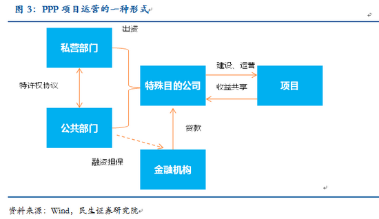 PPP模式(Public-Private-Partnership,即“公共部門-私人企業(yè)-合作”的模式)指的是公共部門通過與私人部門建立伙伴關(guān)系,共同提供公共產(chǎn)品或服務(wù),是20世紀90年代后出現(xiàn)的一種新的融資模式。 PPP模式的一個典型結(jié)構(gòu)是公共部門與中標(biāo)單位組成的特殊目的公司簽訂特許合同,由特殊目的公司負責(zé)融資、建設(shè)及經(jīng)營。這種融資形式的實質(zhì)是政府通過給予私營公司長期的特許經(jīng)營權(quán)和收益權(quán)來換取基礎(chǔ)設(shè)施建設(shè),以解決政府的財政困境。 ![]()