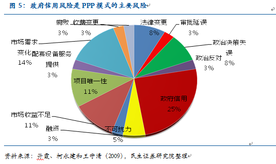 6、項目收益無保障。一些PPP項目建成后,政府或其他投資人新建、改建其他項目,與該項目形成實質(zhì)性競爭,損害其利益。在杭州灣跨海大橋建設(shè)未滿兩年時,相隔僅五十公里左右的紹興杭州灣大橋已準(zhǔn)備開工,與杭州灣跨海大橋形成直接商業(yè)競爭。此外,政府對一些PPP項目承諾特定原因造成的虧損進行補貼,但補貼額度與方法無具體規(guī)定。 在這些缺點當(dāng)中,政府信用風(fēng)險是最主要的風(fēng)險。主要源于某些地方政府官員為了提升政績,在短期利益的驅(qū)使下,通過過高的固定投資回報率,過高的收費標(biāo)準(zhǔn),過長的特許經(jīng)營期以吸引民營資本,但最終又因公共機構(gòu)缺乏承受能力,產(chǎn)生信用風(fēng)險。 ![]()